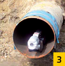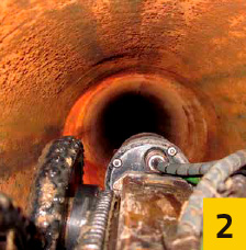 Inspección de tuberías por secciones con una cámara de TV móvil y evaluación consiguiente de las grabaciones de video.