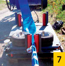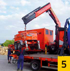 Posicionamiento de la manguera de alta presión bobinada y del cabrestante al inicio y al final del pozo