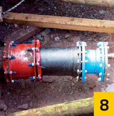 Montaje del empalme de transición con fijación en la tubería vieja.